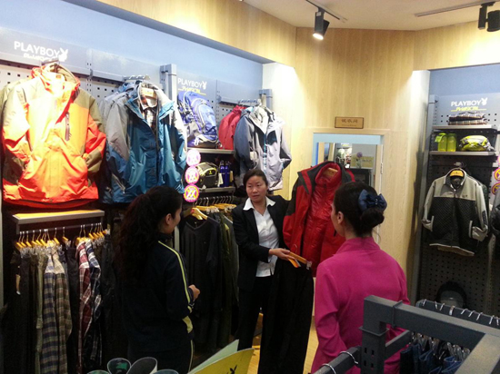 四樓商場(chǎng)劉紅經(jīng)理現(xiàn)場(chǎng)指導(dǎo)營(yíng)業(yè)員服裝銷售搭配
