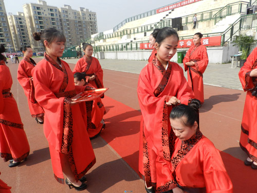禮文化是華夏文化的核心,冠禮和笄禮是一個新的成人第一次踐行華夏禮儀, 也是冠者進入華夏禮儀系統的起始。所謂"冠者禮之始也",淮北市天一中學繼承并發揚這一優良傳統,堅持從“品”樹人,從“學”育人。自2010年6月至今,據不完全統計,已有5000多名學生接受天一中學成人儀式,成為頂天立地的成人。