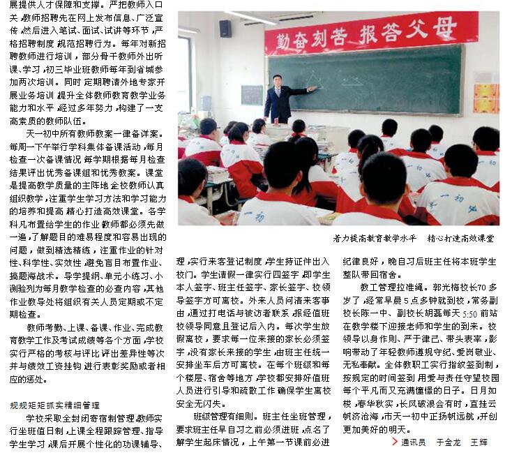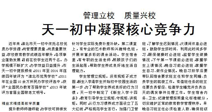 淮北晨刊連續報導:天一初中凝聚核心競爭力